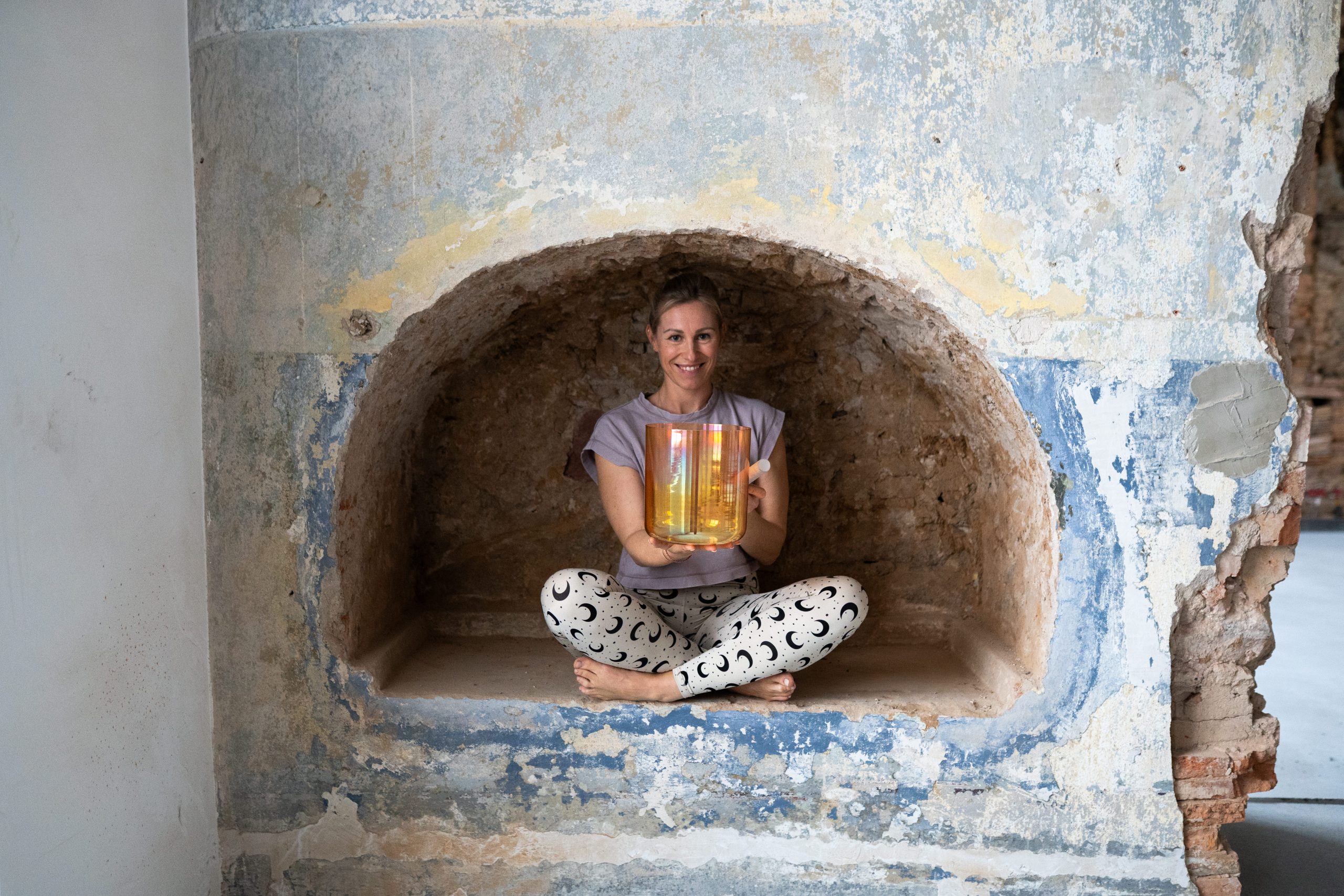 Durch Yoga habe ich den Zugang zu Klang und Frequenzen entdeckt. Die Kristallklangschalen haben mir gezeigt, wie heilsam es sein kann, einfach zu liegen, zu lauschen und präsent im Moment zu sein.